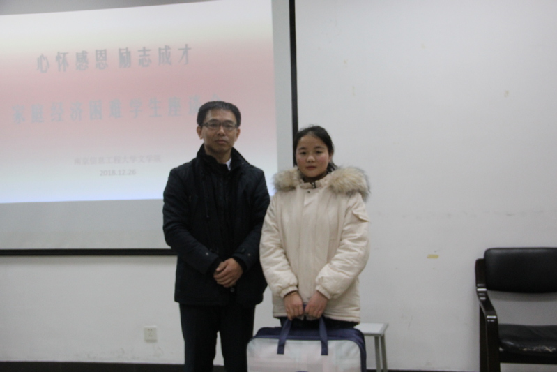 最后学院组织开展了“冬季送温暖”活动,杨长年书记给在座的各位同学发放了生活用品。