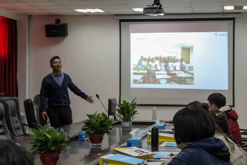 顾老师首先就“参加工作应具备什么”这一问题向同学们进行了简单的提问,继而从上课模式、现代化设施、近年来取得的成效等详细介绍了学而思的教育发展情况,并讲述了自己的教学经历。此外,顾老师就教师待遇及招聘要求进行了进一步的阐述。期间,同学们认真聆听,与顾老师积极互动。