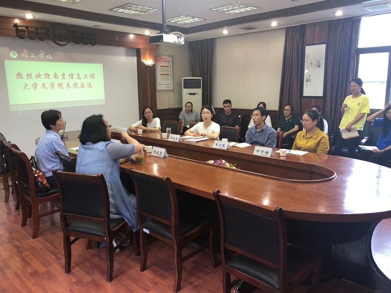2019年6月11日下午,永利集团3044官网欢迎您院长助理焦俊霞老师和中文系主任张勇老师一行前往江苏理工学院人文社科学院进行研究生招生宣传和学术交流研讨。江苏理工学院人文社科学院副院长、副书记李晓曼、秘书系副主任许梦婕、中文系主任王宏民、副主任张丽芬、杨红英以及部分学生代表参与交流。