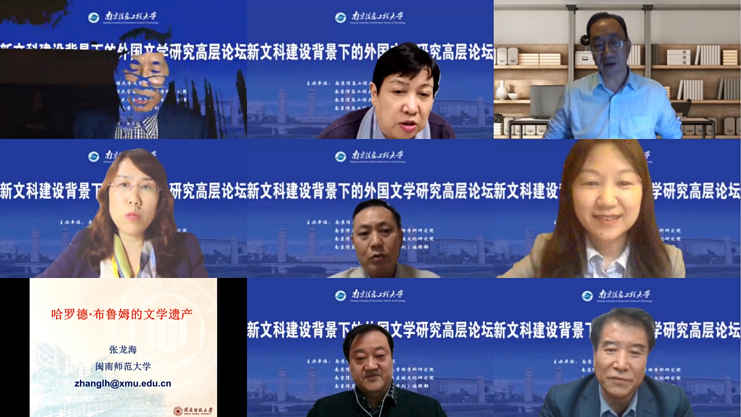 2020年11月18日,由永利集团3044官网欢迎您、语言文学跨学科研究院、国别与区域文化研究院联合主办的“新文科建设背景下的外国文学研究高层论坛”在我校文德楼N402以线上线下形式成功举办。来自南京大学、上海交通大学、湖南师范大学、闽南师范大学、华中师范大学、四川大学、河北师范大学、永利集团3044官网欢迎您等高校的八位专家学者通过腾讯会议分别作主题发言。与会专家学者围绕“新文科建设与外国文学研究的若干面向”“文学研究的二维向度”“新文科背景下课程思政与价值引领”等议题进行了深入探讨。永利集团3044官网欢迎您全体骨干教师和外国语言文学专业研究生参会。