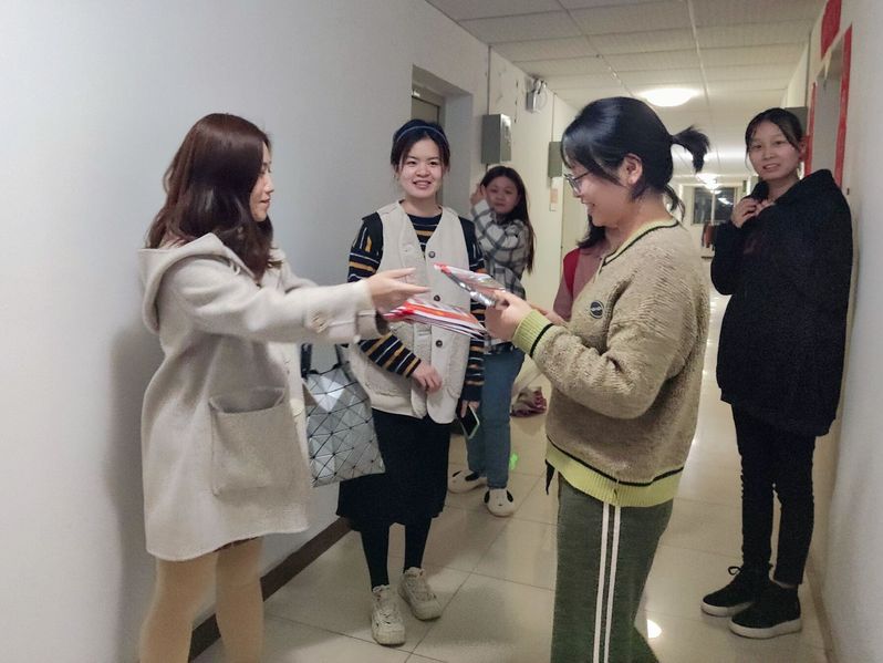 当福袋送到同学们手中时,同学们脸上洋溢着满满的幸福,此时此刻,这是属于文院人独特的温暖。每一个福袋里装着的不仅是支中性笔和涂卡套装,更是学院对每一个学生深切的关怀。领导和老师鼓励大家要咬紧牙关,坚持到最后一站,不放松、不言弃;保持日常的作息和饮食习惯,不要再临考前改变生活规律;临考前要仔细备齐证件和必须的文具;考试时要放稳心态,不论感觉如何,全力以赴便是最好的结局。大家在收到福袋,听了书记和老师真切的祝福后,都纷纷表示会奋战到最后一刻。