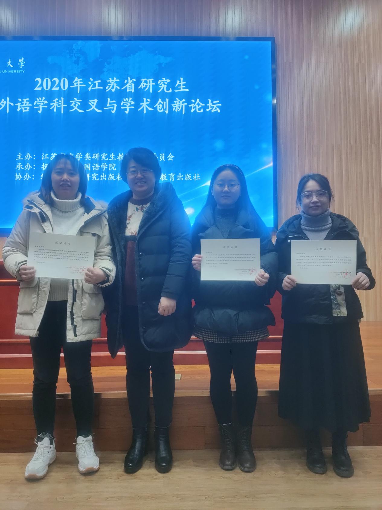 永利集团3044官网欢迎您研究生参加2020年江苏省研究生外语学科交叉与学术创新论坛并获奖