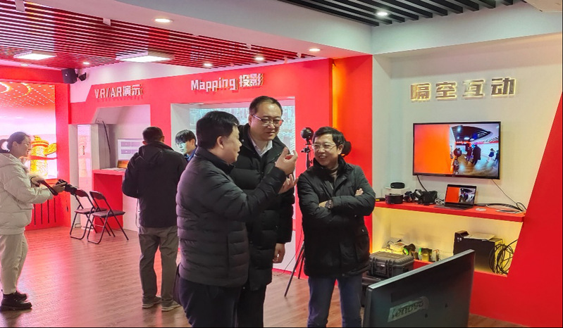在颜杨林社长陪同下,相关人员还调研了江苏经济报融媒体实验工厂、数字党建馆、数字城建馆、数字影像实验室和联通5G联合实验室。
