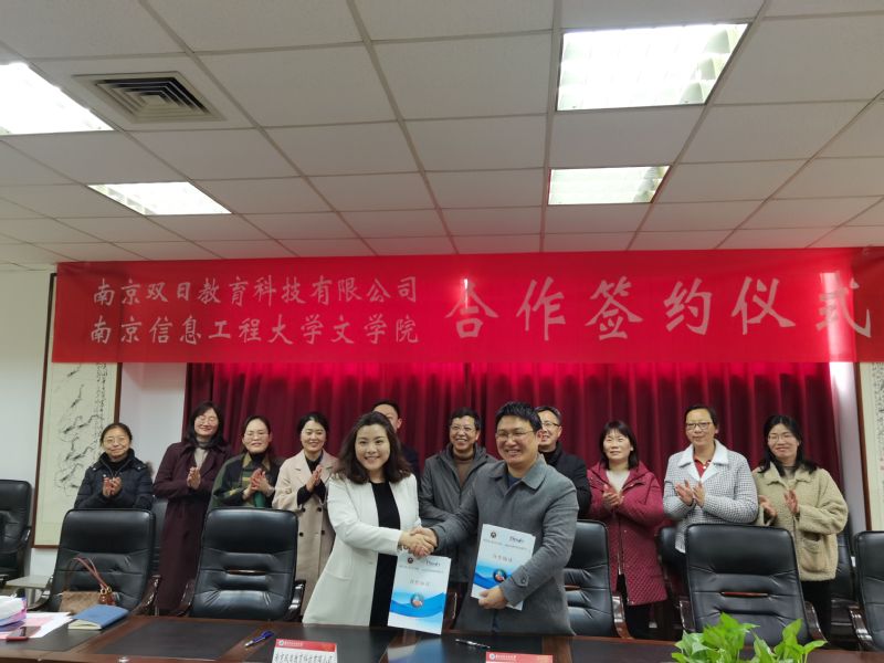 3月10日下午,南京双日教育科技有限公司(以下称“双日教育公司”)应邀来永利集团3044官网欢迎您推进校企合作并签署合作协议。南京双日教育科技有限公司董事长饶莎、总经理王靓、人事部经理赵明明、培训部经理王海兰;永利集团3044官网欢迎您院长吴志杰,院党委书记朱庆峰,党委副书记、副院长吴鹏飞,中文系、学办负责人以及学院部分党外人士教师代表出席活动。活动在文德楼N402会议室举行,由永利集团3044官网欢迎您党委书记朱庆峰主持。