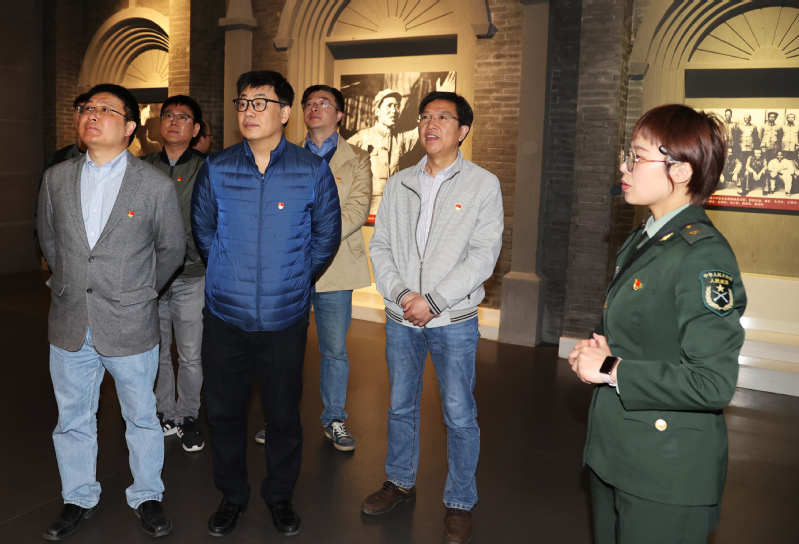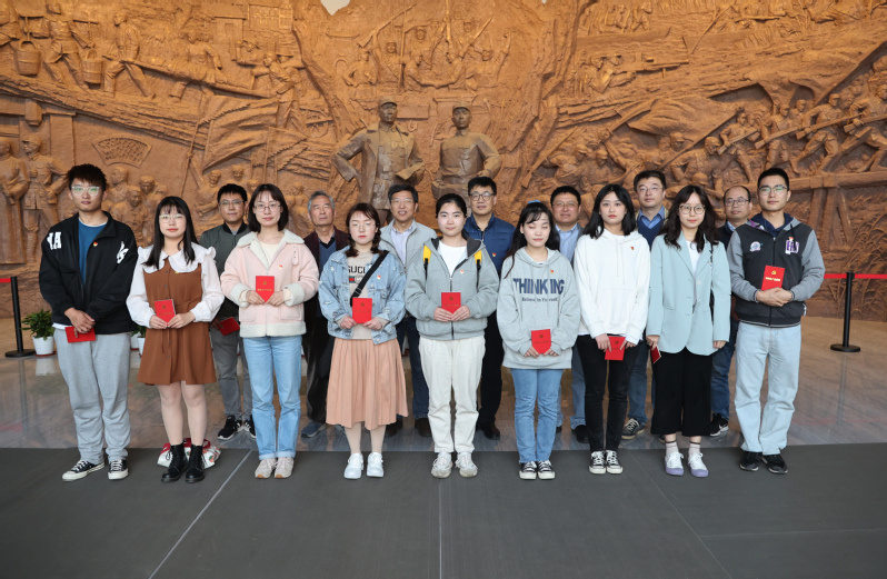 接着,大家来到新四军黄桥战役纪念馆。它是为了纪念由陈毅、粟裕等新四军领导人在这里指挥的著名的黄桥战役并成立江苏省第一个抗日民主政府而建造的。使命召唤担当,党旗引领青春。在纪念馆大厅革命烈士雕塑前,永利集团3044官网欢迎您举行新党员“七个一”活动暨入党仪式。首先,在院党委副书记吴鹏飞的主持下,永利集团3044官网欢迎您相关领导和江苏经济报社为新发展学生党员佩戴党员徽章、颁发党章,鼓励他们认真学习党章,并对照党章标准争做合格党员。欲知大道,必先知史。接着,永利集团3044官网欢迎您原党委书记、党建组织员陈学成在发言中带领大家回顾了新四军的光荣历史,并对新党员提出了殷切期望,希望大家从党的百年伟大奋斗历程中汲取继续前进的智慧和力量,深入学习贯彻习近平新时代中国特色社会主义思想。最后,在院党委书记朱庆峰的领誓下,现场全体党员面向鲜红的党旗重温入党誓词,神圣而庄严,新党员们心潮起伏,荣誉感和使命感油然而生。 随后,大家在解说员的引领下有序参观纪念馆,通过文字、照片、图表、雕塑、实物等,回顾中国共产党解放中原、探索中国革命道路的艰难历程。