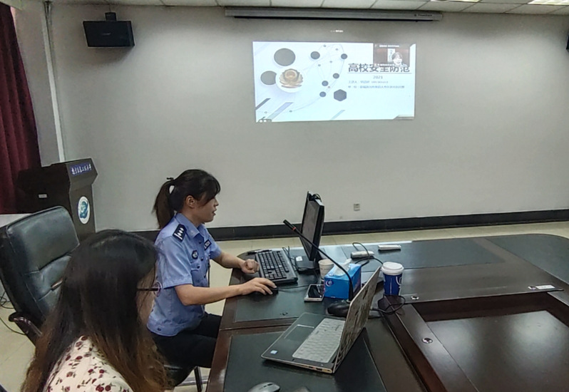 9月8日下午,盘城派出所中队长常欣妍警官在线为学院全体研究生和本科新生做校园安全教育,向新生普及校园安全知识,提高他们安全防范意识,谨防电信诈骗,保护财产安全,为同学们今后的校园生活提供安全保障。