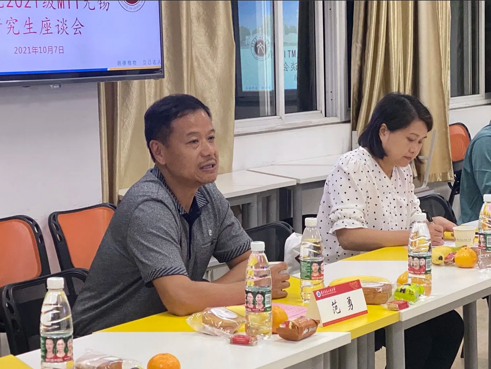 座谈会伊始,范勇书记对无锡校区新同学表示亲切问候和热烈欢迎,并风趣地称本次座谈会为“party”。他向新同学介绍了出席座谈的师生,询问了大家报到后的学习生活情况。他说,无锡校区有着丰富的学习资源和完善的教学设施,希望无锡的同学多多珍惜攻读硕士研究生的机会,严格要求自己,多钻研多思考,多与导师沟通交流;同时要多与校本部的同学交流、共同学习、共同进步,为自己今后的人生打下坚实基础。