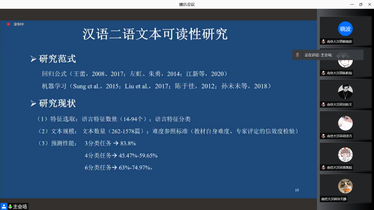 此次论坛共有九位青年学者做了学术报告,并由张伯江、杨亦鸣、赵杨、储泽祥、施春宏、周小兵等知名专家进行了点评。通过观看此次讲座加深了汉语国际教育专硕学生对对外汉语教学学术前沿的认识,为之后的学术研究提供了选题方向和理论指导。