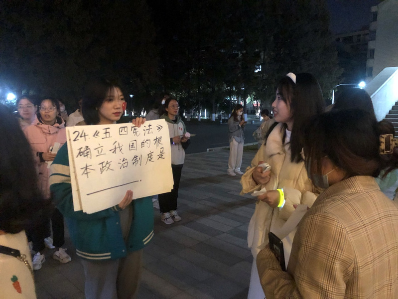 18时30分,各位选手佩戴定制的荧光手环,以文德楼东大门为起点,最终到达终点滨江楼。途经风云剧场、图书馆两处设置了答题点,每位选手到达每一处答题点后均要在规定时间内答对五道党建知识问题,然后以跑完全程的速度排名和答题成绩加权作为他的最终成绩。