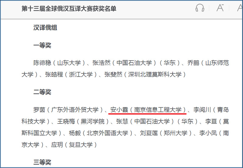 11月26日,第十三届全球俄汉互译大赛获奖名单揭晓,永利集团官网外国语言文学2021级俄语专业硕士研究生安小霞荣获汉译俄组二等奖。