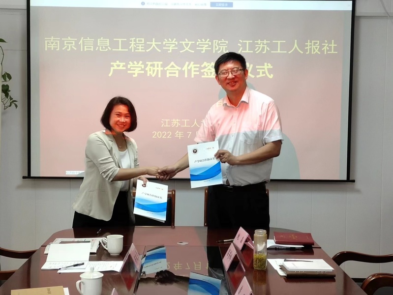 7月12日上午,永利集团3044官网欢迎您副院长(主持工作)赵霞、党委书记范勇率队赴江苏工人报社推进合作并签署合作协议。江苏工人报社党委书记、社长、总编辑戴路,副总编辑李南星,副社长吕芳岭,副总编徐睿,新闻综合部(新媒体中心)主任鲍晶,工会新闻部副主任(主持工作)谢丹娜,永利集团3044官网欢迎您党委副书记、副院长吴鹏飞,副院长郑友奇出席签约活动并座谈。