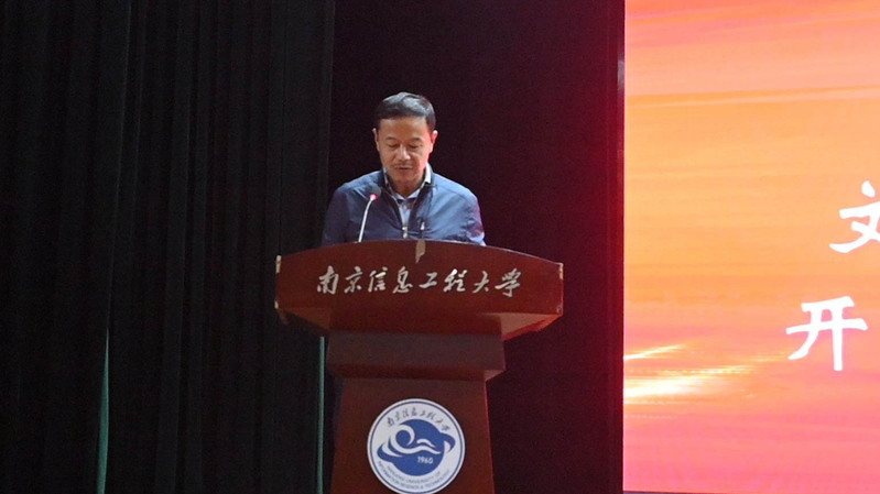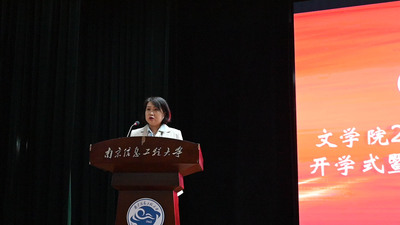 活动在雄伟庄严的国歌拉开序幕。赵霞副院长(主持工作)为学生讲授入学第一课。首先她代表永利集团3044官网欢迎您全体师生向通过十年寒窗、披荆斩棘考入永利集团3044官网欢迎您的235名本科生、83名研究生和17名“2+2”中外合作项目学员表示最热烈的欢迎和诚挚的祝贺,向辛勤培养他们的老师和家长们表示最衷心的感谢。她说,新同学的到来,给永利集团3044官网欢迎您注入了新血液、增添了新活力,带来了新气象。在简要介绍了南信大永利集团3044官网欢迎您历史沿革和发展现状后,赵霞副院长作为学院的负责人和知名教授,向学生提出要求:希望新同学从健全体魄、立德修身,坚定信念、矢志前行,笃学善思、不断积累这四个方面入手,充分利用好当前学校学院的大好环境,在大学期间练就真本领,把“文以载道抒家国情怀,学以致用谱天下华章”作为自己努力的目标,成为具有家国情怀、全球视野、德智体美劳共同发展的栋梁之才。最后,她祝愿新同学不负光阴韶华、在信大舞台上“文笔挥舞激昂靓丽青春,学贯中外铸就精彩人生”。