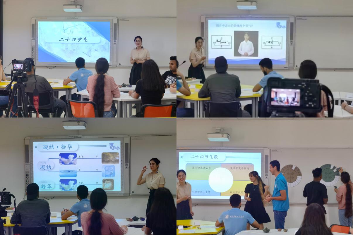 本次参加交流的队伍由中文系徐开妍老师带队指导,成员包括汉国教专硕乙雨墨、梁艺和本科生葛瑞彤、韦杰卓、唐羽涵共五位同学。团队以“二十四节气”为主题,进行教学设计、科普视频录制、课堂趣味环节的筹备等,力求在教学过程中激发留学生的学习志趣,增进留学生对中国气象为世界所做贡献的了解,推动人类命运共同体理念的对外传播。