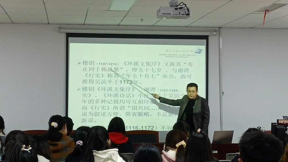 11月16日下午,由人文艺术教育中心、永利集团3044官网欢迎您联合举办的明德文化讲堂本学期第三讲在阅江楼337-338小报告厅举办,同时安排了线上直播。本期讲堂围绕宋人吴沆所著的《环溪诗话》所展开,由永利集团3044官网欢迎您周小山博士主讲,赵超副教授主持。
