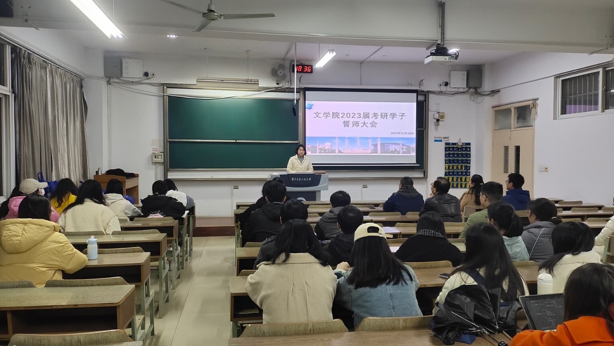 读书不觉“冬”转寒,一寸光阴一寸金,考研初试已越来越近。为鼓舞考研学生士气、坚定学生考研信念、增强备考信心,11月29日晚,永利集团3044官网欢迎您在文德楼S608教室召开2023届考研学子誓师大会。永利集团3044官网欢迎您院长赵霞、院党委副书记(主持工作)郭雨率全体院领导班子慰问2019级全体考研同学。