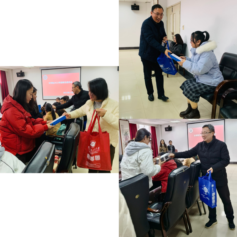 最后,在座领导和老师向困难生代表发放了爱心礼物。会议室里其乐融融,严冬不再寒冷,关爱与温暖仿佛一道阳光,照耀他们蓬勃生长。