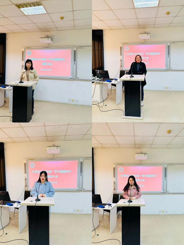 党委委员、副院长杜玉生宣读了学院党委关于表彰2022年度学习强国标兵的文件。获奖教师代表陈梅松、焦俊霞,学生代表崔之韵、张斐然先后发表获奖感言。她们表示,“学习强国”学习平台开拓了视野,提高了党员的先锋意识,今后将会一如既往地把“学习强国”平台学习好,汲取更多理论知识,不断提高党性觉悟,为学院高质量发展和学生高质量成长做出更多贡献。