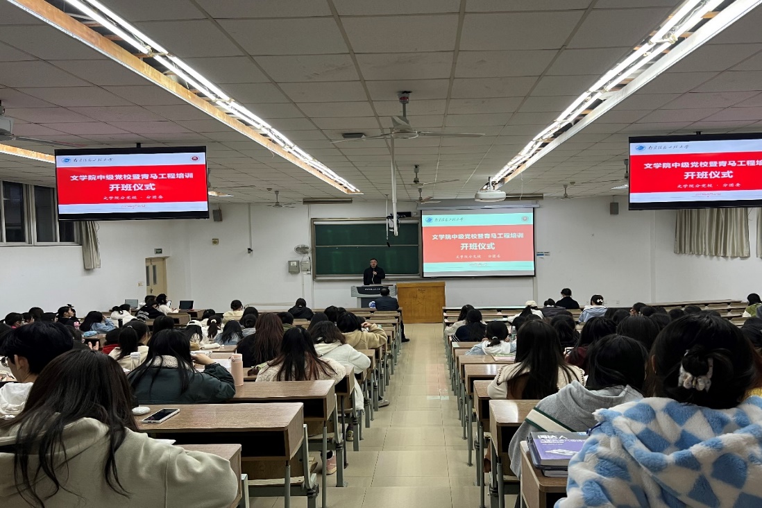 3月27日晚,永利集团3044官网欢迎您举办2023年度中级党校暨“青马工程”开班仪式,学院党委副书记(主持工作)郭雨出席仪式并为学员讲授第一课。学院党委副书记、副院长吴鹏飞,团委书记张潇潇,辅导员李渊,全体第98期入党积极分子和青马工程培训班学员参加开班仪式,仪式由党委副书记、副院长吴鹏飞主持。
