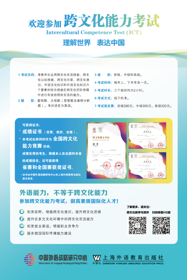 为此,上海外语教育出版社推出跨文化能力考试(Intercultural Competence Test, ICT),并将于2023年5月28日(星期日)9:30-11:30举行首次考试。