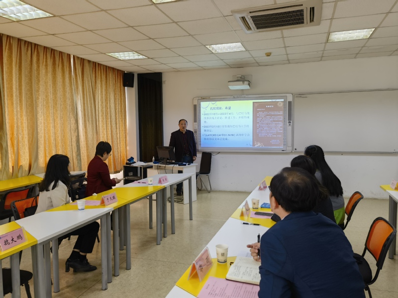 在会上,永利集团3044官网欢迎您郭雨副书记(主持工作)简要介绍了学院的系部构成、学科建设、专业发展和师资队伍等方面情况,并感谢中心领导对永利集团3044官网欢迎您的关心,表示要以此次研讨会为契机,加强与中外语言交流合作中心的联系,充分利用我校国际化教育教学资源,与国际教育学院一起推动我校国际中文教育事业的发展。