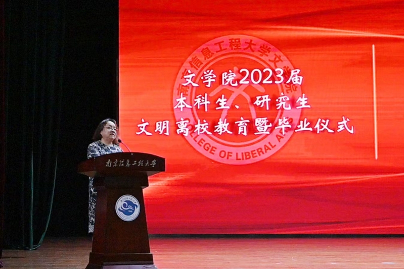 数载青春似水流年。仪式开始前,精心制作的毕业纪念视频便将师生们带回到记忆的长河之中。随后,毕业研究生代表通过诗朗诵《南信大》表达了对在校时光的思念和回忆,同时也向毕业生表献上了最诚挚的祝福。