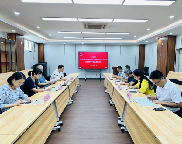 8月31日上午10点,文学院党委在文德楼N402召开学习贯彻习近平新时代中国特色社会主义思想主题教育专题民主生活会。校党委常委、副校长韦忠平,校审查调查处处长唐敏到会指导,学院全体党委委员、领导班子成员参会,会议由党委副书记(主持工作)郭雨主持。