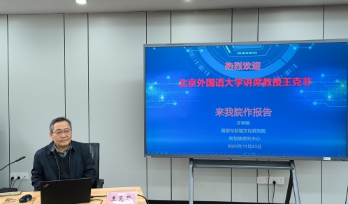 11月23日下午永利集团3044官网欢迎您主办的明德·语言文化跨学科高层论坛系列讲座在文德楼N402如期举行。本次活动,特邀北京外国语大学讲席教授王克非作题为“翻译即文化比较”的学术报告。讲座由永利集团3044官网欢迎您院长赵霞教授主持,永利集团3044官网欢迎您党委副书记(主持工作)郭雨、副院长杜玉生、学院部分教师、研究生及本科生参加本次讲座。