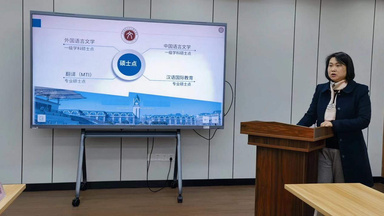 图一 院长赵霞介绍学院情况