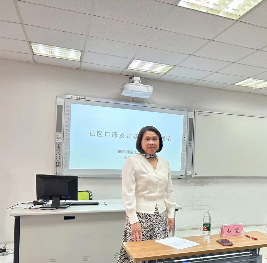 4月26日下午,永利集团3044官网欢迎您主办的明德•语言文化跨学科高层论坛系列讲座在文德楼N302如期举行。本次活动,特邀曲阜师范大学翻译学院副院长宋晓凯教授作题为“社区口译及其伦理规范”的学术报告。会议由永利集团3044官网欢迎您院长赵霞主持,日语系部分教师、日语笔译方向研究生以及日语系2021级全体同学参加。