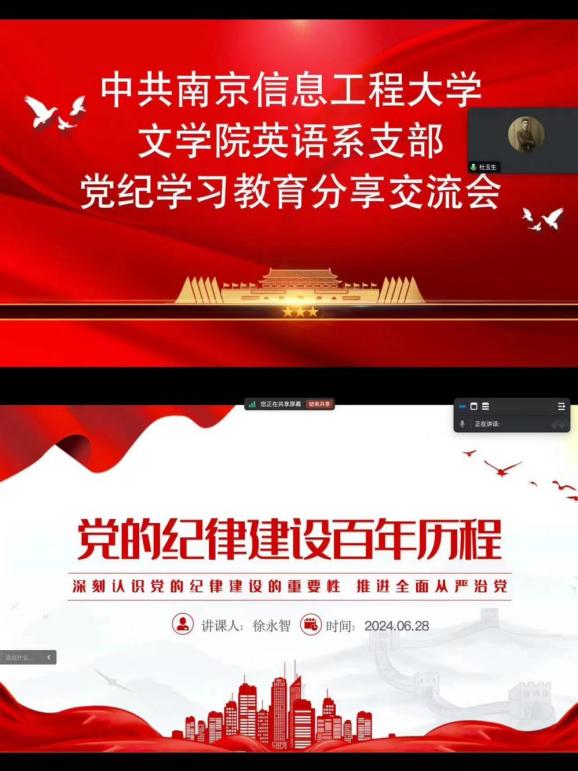 6月5日,公共英语教学部党支部书记杨艳琴为支部党员上了一堂题为“党的纪律建设百年历程”的党课。这次党课详细介绍了中国共产党党纪的产生、发展和重要意义。中国共产党在建党之初就非常重视党的纪律,并在不断的发展和实践中对党纪进行扩充和完善。通过党纪建设,保证从严治党,加强党的自身建设,保证党的先进性和纯洁性。