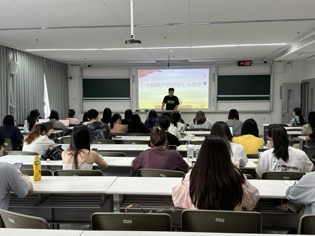 6月27日晚,日语系党支部组织开展“坚定信念严守党纪——支部书记讲党课”主题党日活动。支部书记陈甜以“学习《中国共产党纪律处分条例》(以下称《条例》)”为题,结合自身学习体会和工作内容,讲授了一堂内容丰富的党纪学习教育课。