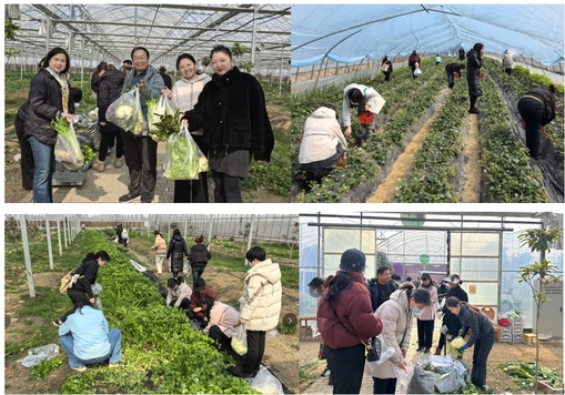 天气晴朗,绿意盎然,老师们欢聚草莓园和蔬菜采摘园。草莓硕果累累、鲜艳欲滴,老师们手提果篮,积极参与到采摘活动中,化身快乐的果农。在蔬菜大棚内,老师们弯下腰认真地拔菜、剪菜,辨识各类蔬菜的品种,虽然手上沾满了泥土,但大家的笑容比阳光还灿烂。此次活动让大家感受到了“田园乐趣”,收获了“胜利果实”,老师们笑意盈盈,精心挑选,为采摘到漂亮的蔬果而欢笑。