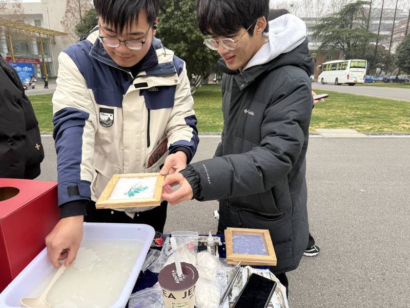 此外,在学校志愿集市上,志愿者们精心策划了爱心盲盒造纸术——古法纸签活动。学生们在盲盒提问中深化对雷锋精神的解读个人志愿服务经历的分享等,也亲身体验了古法造纸的全过程,从纸浆的制作、纸签的成型到装饰与书写祝福,亲手制作的纸签上领略中国传统文化的独特魅力,共同营造和谐美好的校园文化氛围。