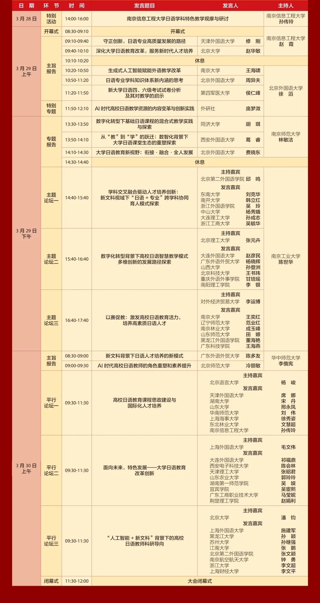 高校外国语学院院长/副院长、日语专业系主任及大学日语负责人、骨干教师