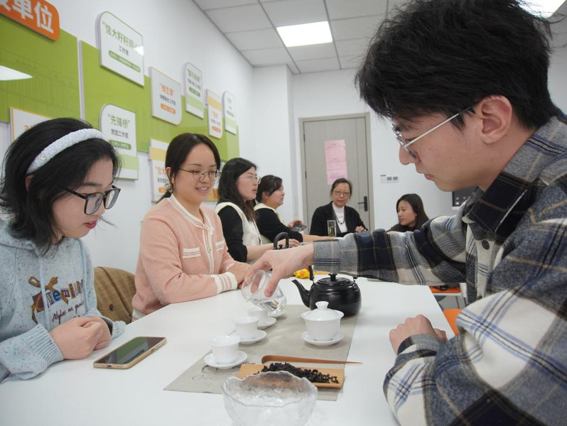 实践体验环节将活动推向高潮。师生们分组围坐在原木茶席前,在茶艺师指导下亲手体验温杯醒茶悬壶高冲春风拂面等传统冲泡技法。随着茶汤在素瓷杯中流转,铁观音的醇厚、碧螺春的清香,在杯盏间流转,茶香浸润心田,浮躁随之沉淀。大家以茶会友,畅谈对传统文化的感悟,在茶香中追溯历史,于交流中体味生命的意义。