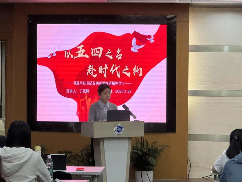优秀青年代表2023级汉语言文学专业丁羽桐作《以“五四”之名赴时代之约》主题宣讲。她结合习近平总书记五四重要寄语精神,从“解码百年团史中的青春密码”“书写文院学子的担当答卷”两方面展开,号召青年要做《海棠花祭》的“诵读人”,更要做红色基因的“传承者”。交流分享环节,青年们围绕五四精神,结合当下生活,各抒己见、畅所欲言。他们结合自身学习生活实际畅所欲言,分享了在志愿服务中践行五四精神的感悟,讲述了在专业学习中勇于探索创新的经历,大家在交流中碰撞思想火花,进一步深化了对五四精神内涵的理解。