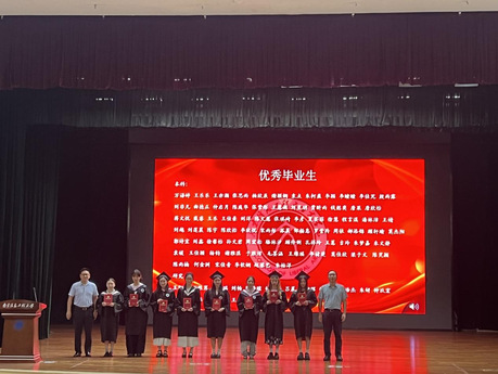 随后,毕业仪式在庄重的国歌中正式拉开序幕。高盛蔷首先宣读优秀毕业生、荣誉学士学位获得者、校友工作联络员名单,院领导们分别登台为他们颁发证书和聘书。