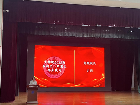 院长赵霞教授首先回顾了25届毕业生取得的优异成绩,特别肯定了同学们在学术研究、文学创作和社会实践等方面展现出的卓越才华,并以三个关键词勉励毕业生:一是坚守,希望同学们永葆文学初心,守护精神家园;二是创新,鼓励大家在传承中开拓,在守正中出新;三是担当,期待毕业生以文学力量服务社会,讲好中国故事。最后,她祝愿各位毕业生前程似锦、一帆风顺。