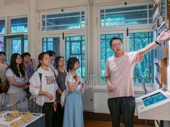 8月18日下午,师生一行抵达中国社会科学院大学良乡校区,并在校方人员陪同下参观校史馆。馆内陈列展示了自1978年中国社会科学院研究生院成立,至2017年正式更名为中国社会科学院大学的重要历史实物与学者事迹,突显其“科教融合”的办学特色与人才培养成果。